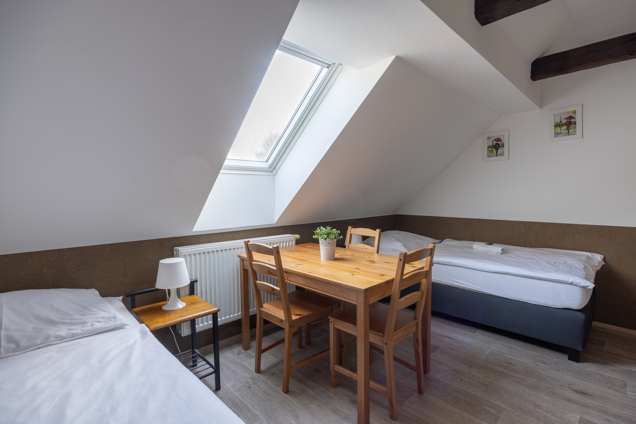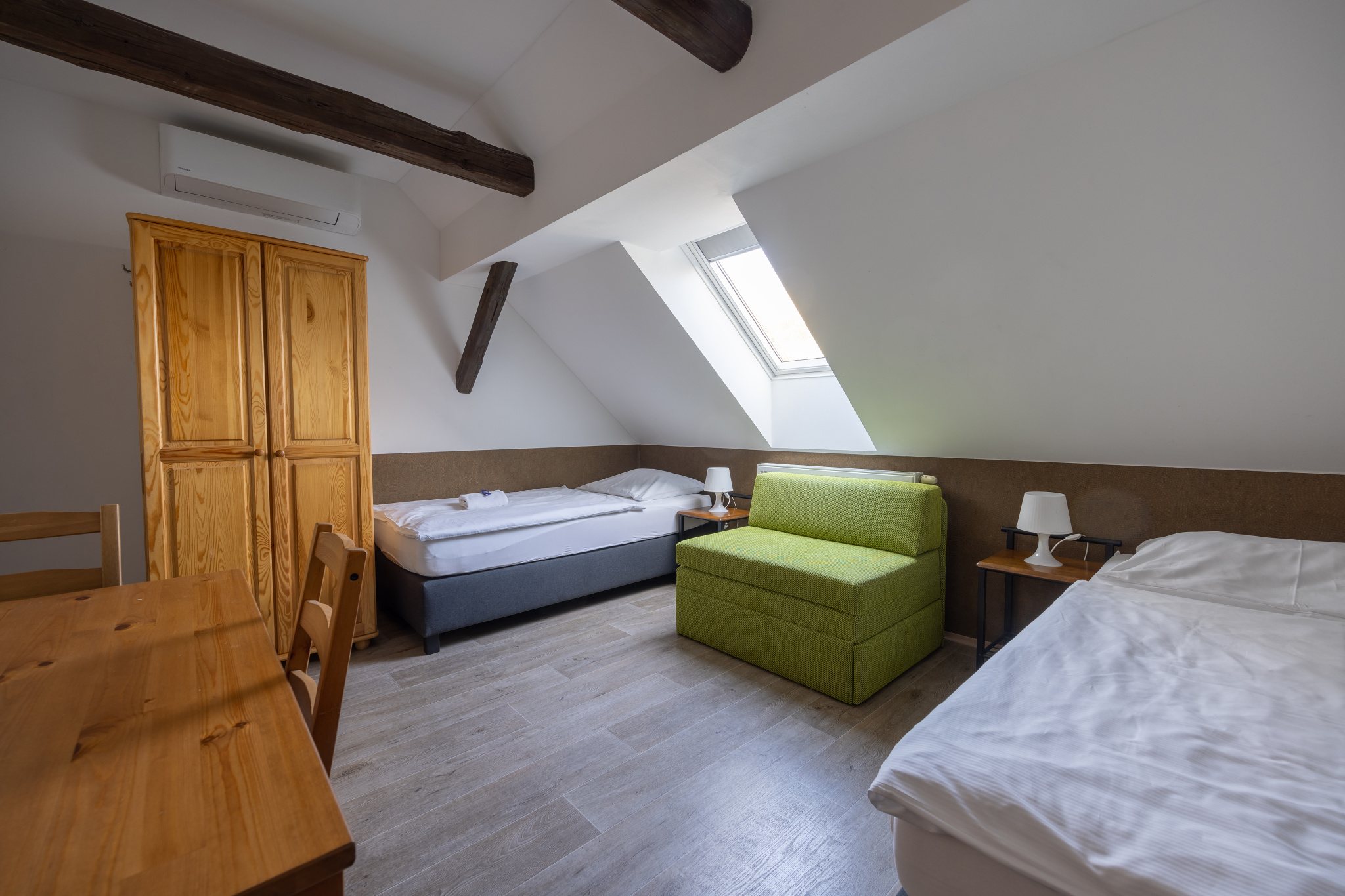 Nabízíme útulné a prakticky vybavené dvou- a třílůžkové pokoje o velikosti 9–16 m². Každý pokoj disponuje vlastní koupelnou se sprchou, základními toaletními potřebami a ručníky. Součástí vybavení je klimatizace, Televize a bezplatné Wi-Fi připojení. K dispozici je ve společných prostorách lednička, mikrovlnná trouba, rychlovarná konvice a vybavení pro přípravu teplých nápojů.