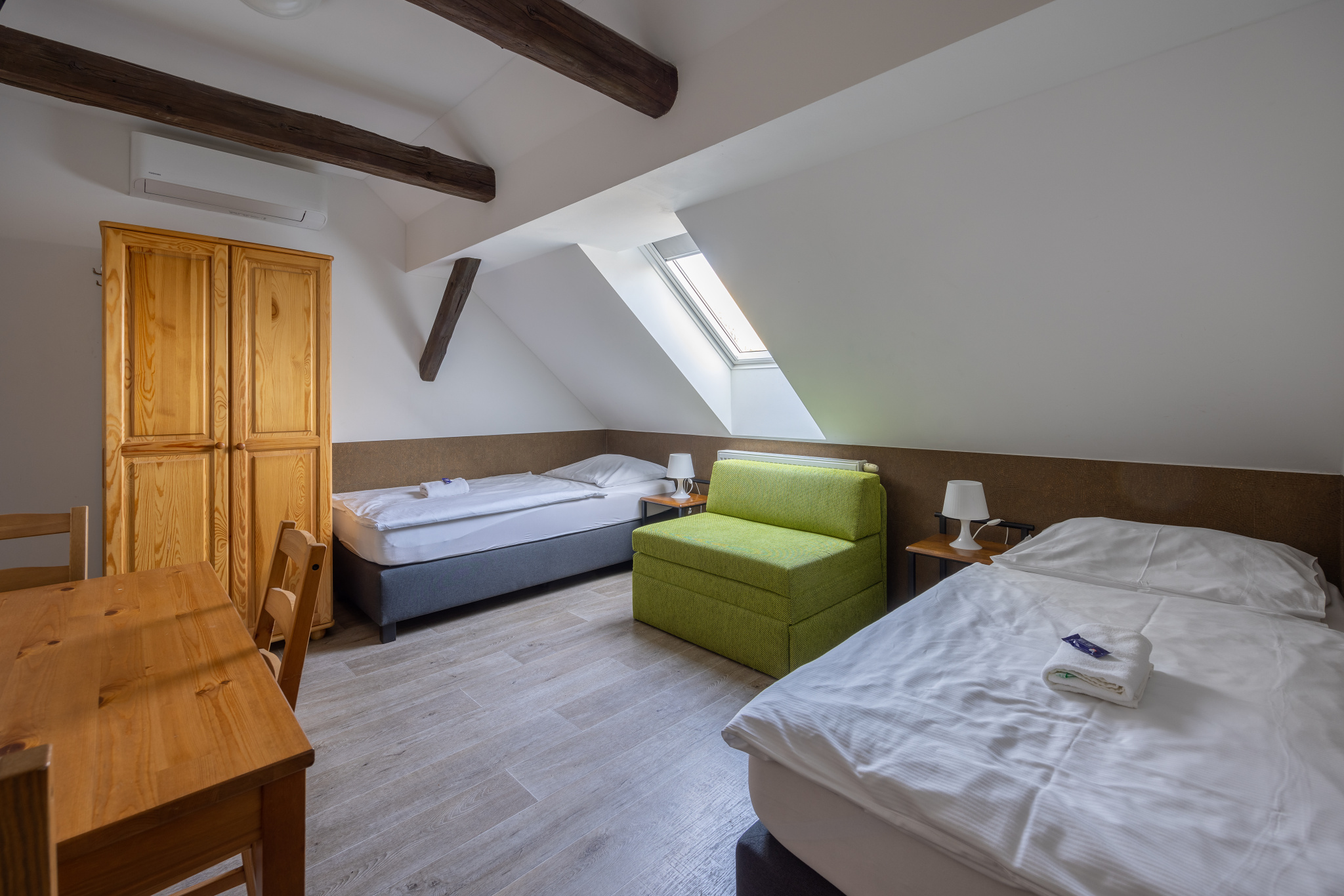 Dvou- a třílůžkové pokoje s klimatizací a vlastním sociálním zařízením