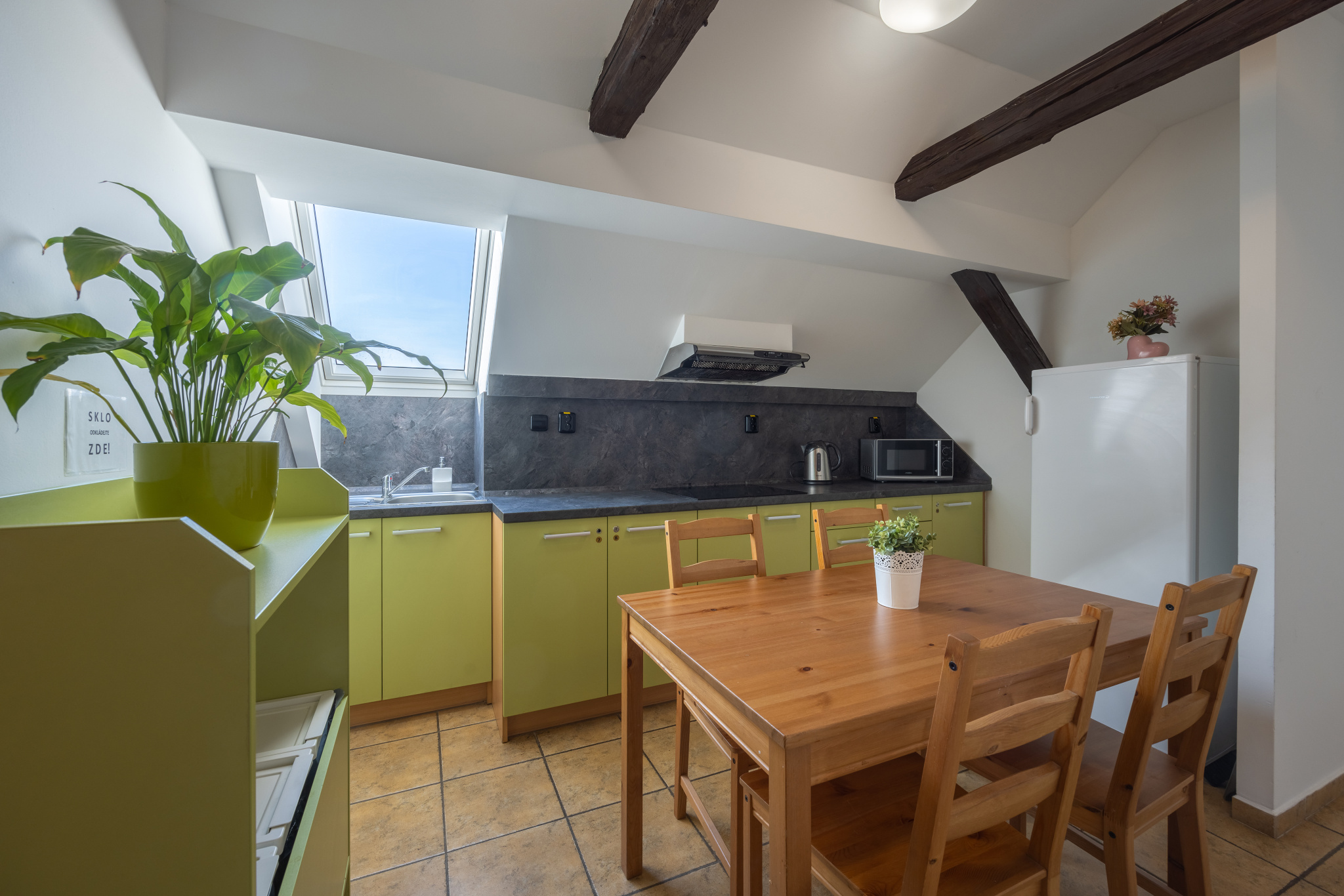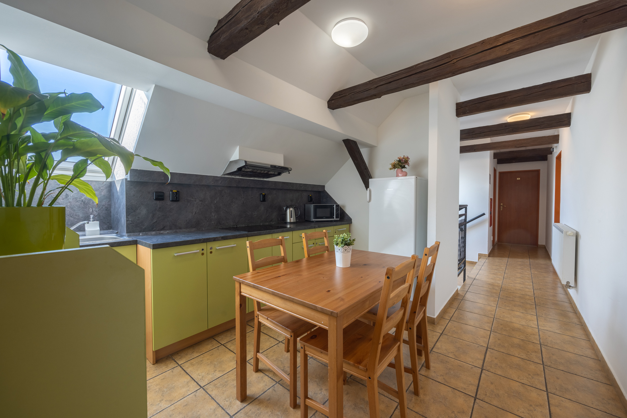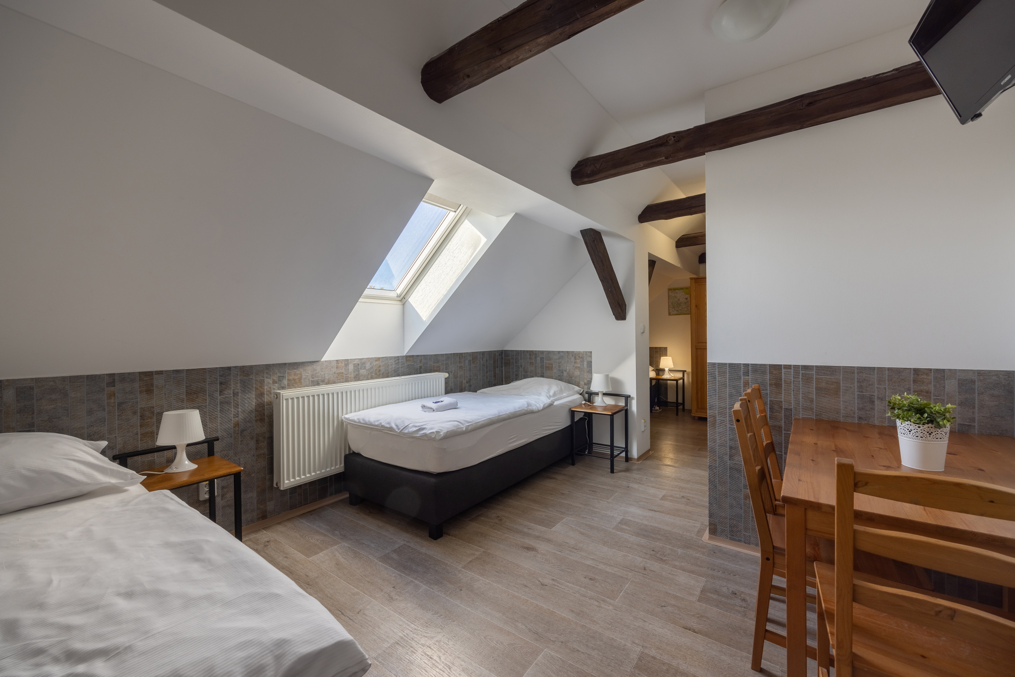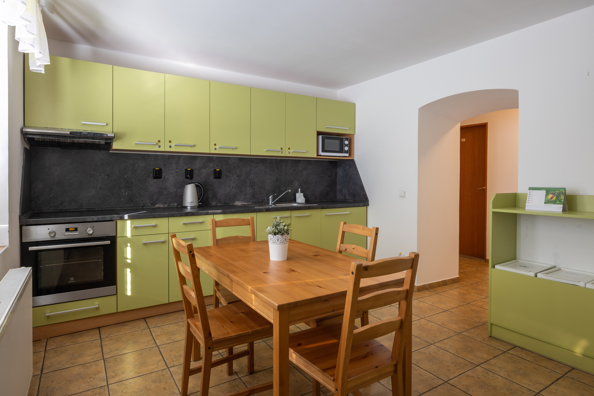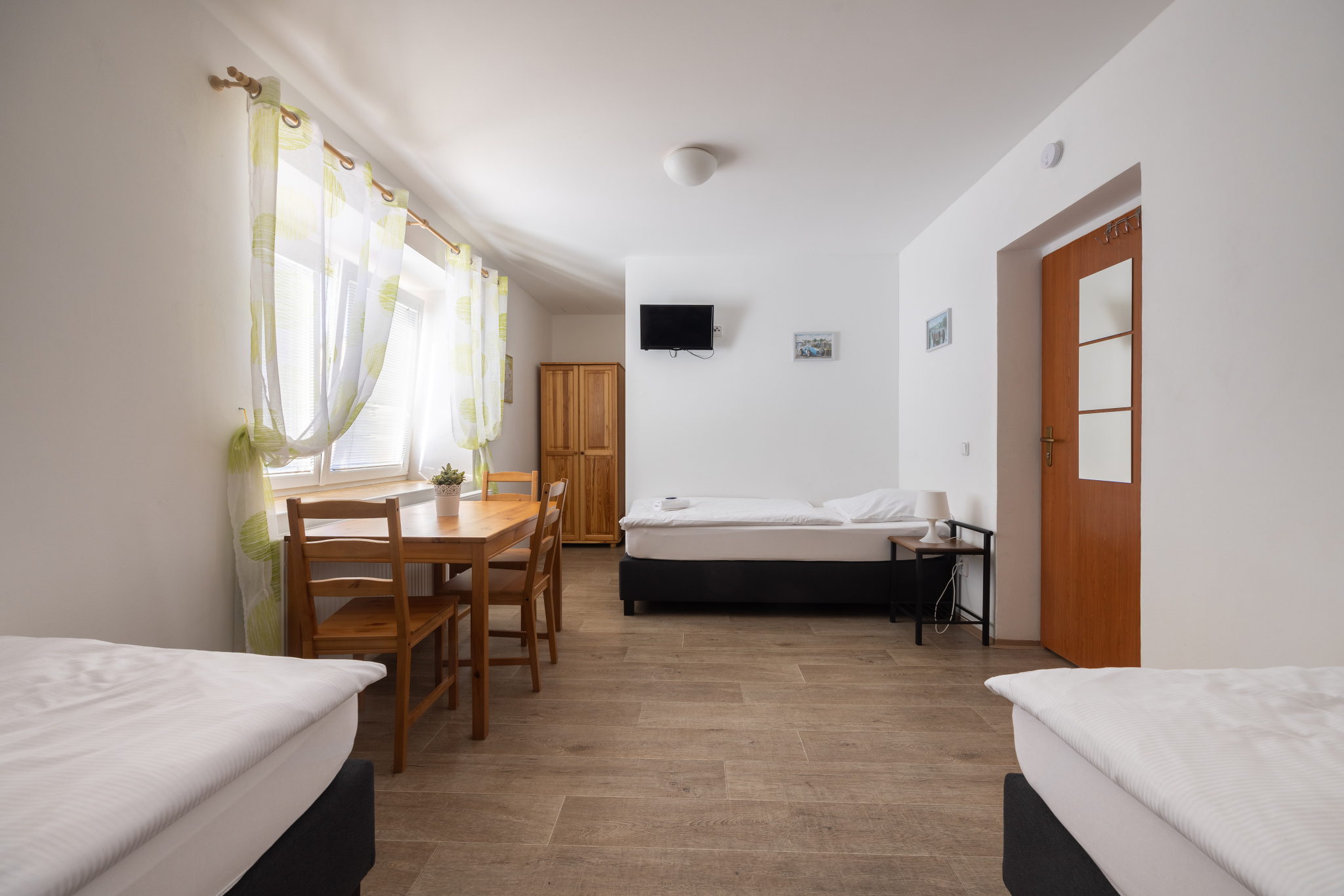 Pokoje doplňuje praktický nábytek – jídelní stůl, šatní skříň a odkládací prostor. Všechny jednotky jsou vybaveny ložním prádlem a jsou připraveny k pohodlnému pobytu pro jednotlivce, páry i menší skupiny.